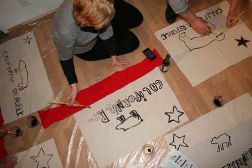 | Wednesday March 30, 2011, 7:30-8:30pm, at Royal NoneSuch Gallery The First California Bear Flag with Erik Bakke From the Gallery press: Participants will take an Instructional on painting the original California “bad painting”--the first California Bear Flag. Those in the audience will be given material with which they can make their own versions. Particular attention will be given to the roughness of execution of the original flag and the “mistakes” it contained. Excerpts from Mariano Guadalupe Vallejo’s history of California will also be read (and other readings). Special thanks to Elizabeth Bernstein and Carrie Hott of Royal NoneSuch Gallery |