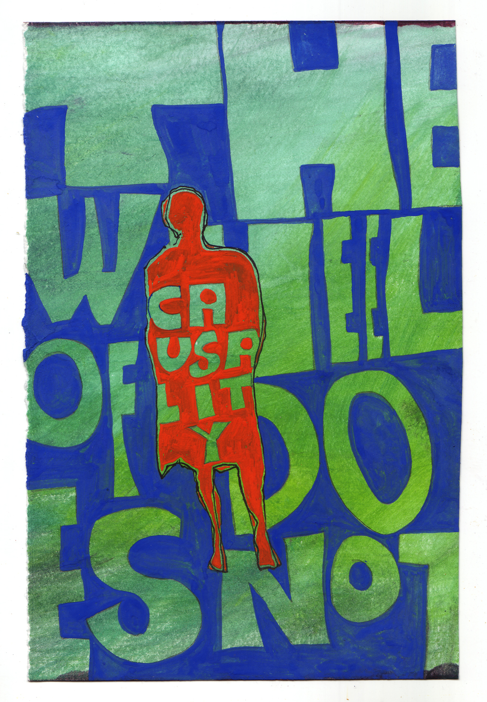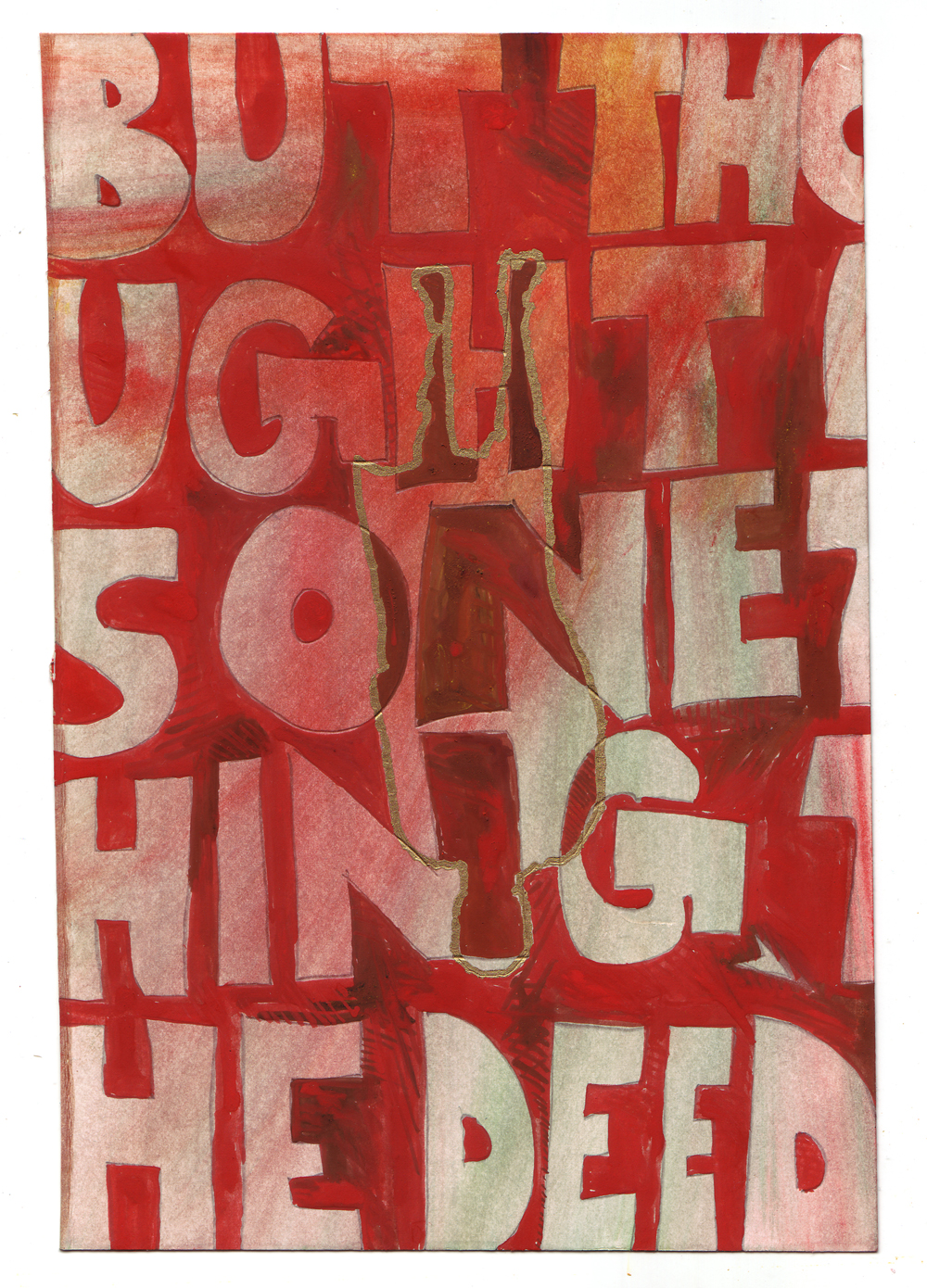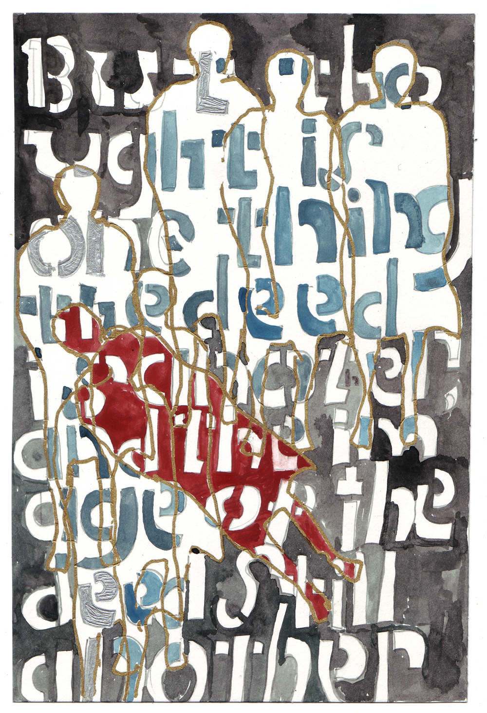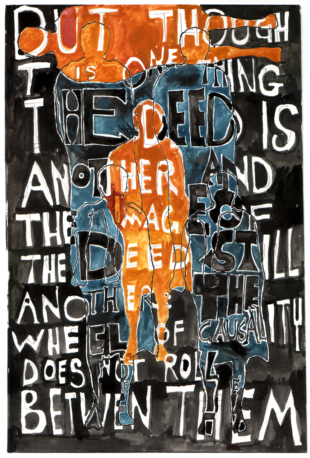 Artist: Erik Bakke Title: 1.7.2011: But thought is one thing, the deed is another, and the image of the deed still another: the wheel of causality does not roll between them. Size: 8 inches x 6 inches |