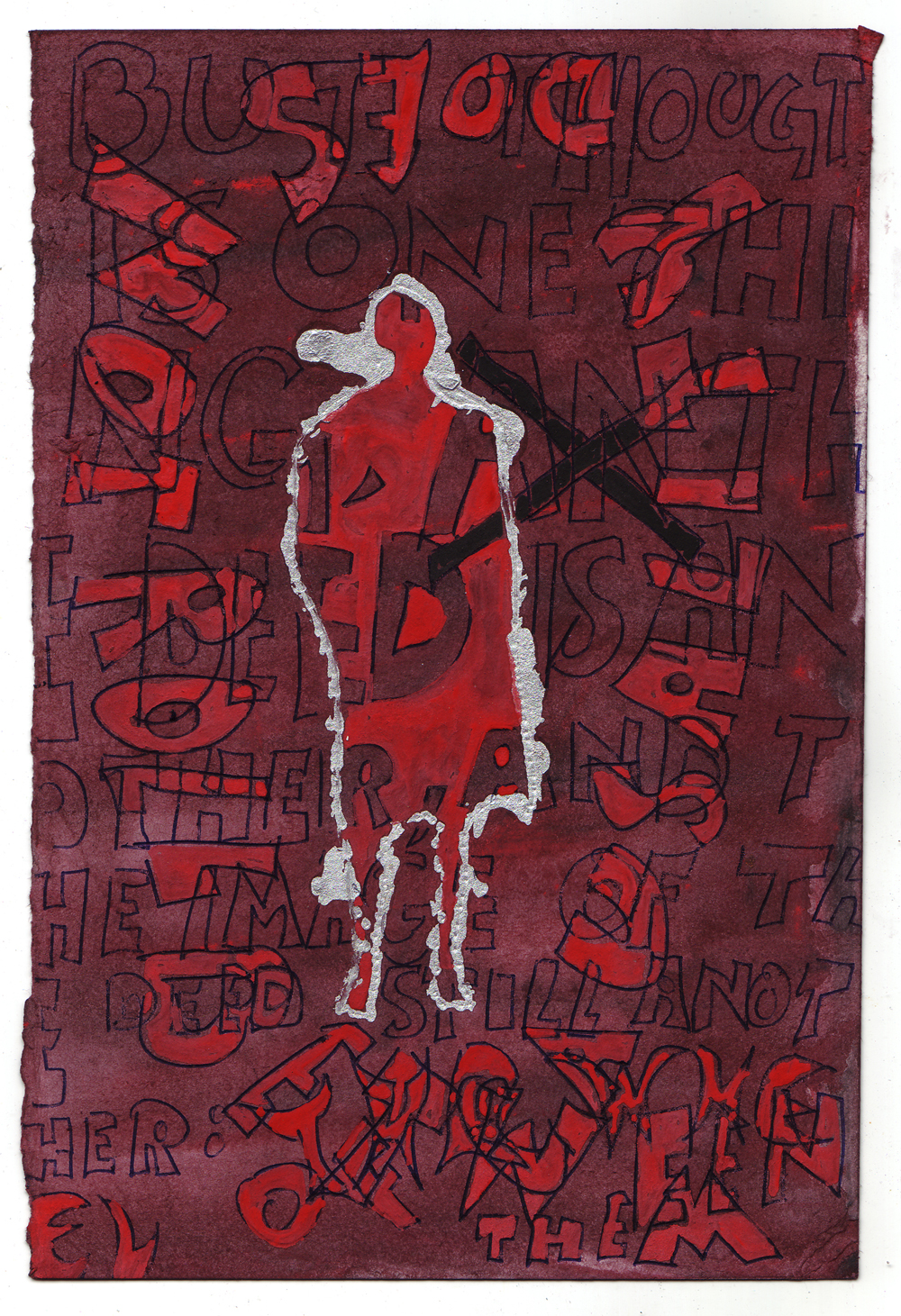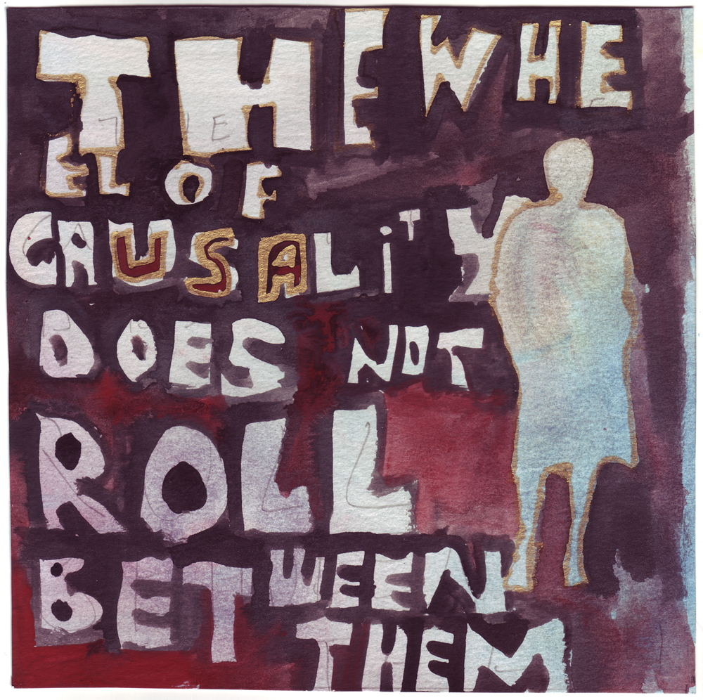 Artist: Erik Bakke Title: 1.3.2011: But thought is one thing, the deed is another, and the image of the deed still another: the wheel of causality does not roll between them. Size: 8 inches x 6 inches |